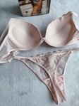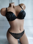 Італійський комплект жіночої білизни Papillon push-up з мереживом і трусиками-стрінгами — стильний вибір для впевнених жінок. Бюстгальтер push-up красиво піднімає і підкреслює груди, а мереживні стрінги створюють ніжний і спокусливий силует. Комплект прикрашений вишивкою та декоративними бусинами.