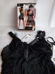 Характеристики:• Бренд: Livia Corsetti• Модель: Ayomide• Тип: комплект (сорочка + стрінги)• Колір: чорний• Розмір: M• Склад: 90% поліамід, 10% еластан• Регульовані бретелі